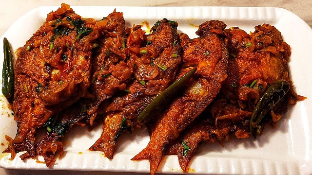 মাছ- ১ কেজি, পেঁয়াজ কুচি- ১ কাপ, হলুদ গুঁড়া- পরিমাণমতো, ধনে গুঁড়া- ১ চা চামচ, জিরা গুঁড়া- ১ চা চামচ, আদা বাটা- আধা চা চামচ, রসুন বাটা- আধা চা চামচ, জায়ফল-জয়ত্রী গুঁড়া- পরিমাণমতো, মরিচ গুঁড়া- ১ চা চামচ, কাঁচা মরিচ- ৫-৬টি, তেল- আধা কাপ, লবণ- স্বাদমতো।