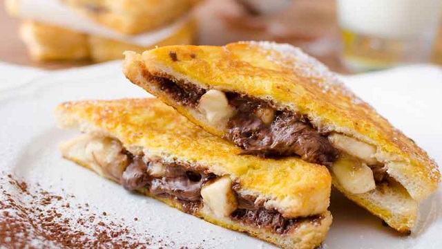 একটি ফ্রাইং প্যানে মাখন গরম করে, তাতে দু’টি পাউরুটি লালচে করে সেঁকে নিন। এবার দুধের মধ্যে সামান্য চিনি গুলে আলাদা করে রাখুন। দু’টি পাউরুটির ওপর ভালো করে চকলেট সস মাখিয়ে নিন।