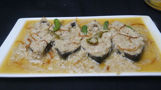 মাছের টুকরাগুলো ভালো করে ধুয়ে নিন। কড়াইয়ে তেল গরম করে এলাচ, দারুচিনি ভেজে পেঁয়াজ বাটা হালকা ভেজে নিন। এর পর আদা-রসুন বাটা ও জিরা গুঁড়া ও লবণ দিয়ে মসলা ভালো করে ভেজে নিন। এবার দই, কাঁচামরিচ, স্বাদমতো লবণ ও চিনি দিয়ে কিছুক্ষণ কষিয়ে নিন। ইলিশ মাছ দিয়ে নেড়ে নারিকেলের দুধ ও জায়ফল-জয়ত্রী গুঁড়া এবং কেওড়া জল দিয়ে মৃদু আঁচে ঢেকে দিন। ১০ মিনিট রান্না করে মাছ মাখা মাখা হয়ে এলে লেবুর রস দিয়ে নামিয়ে পরিবেশন করুন।